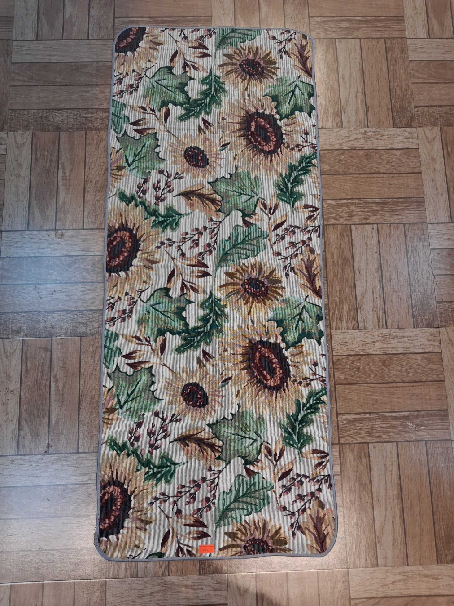 Thick bedside runner with a vibrant sunflower pattern and green leaves, adding a natural touch to your table covers and runners.