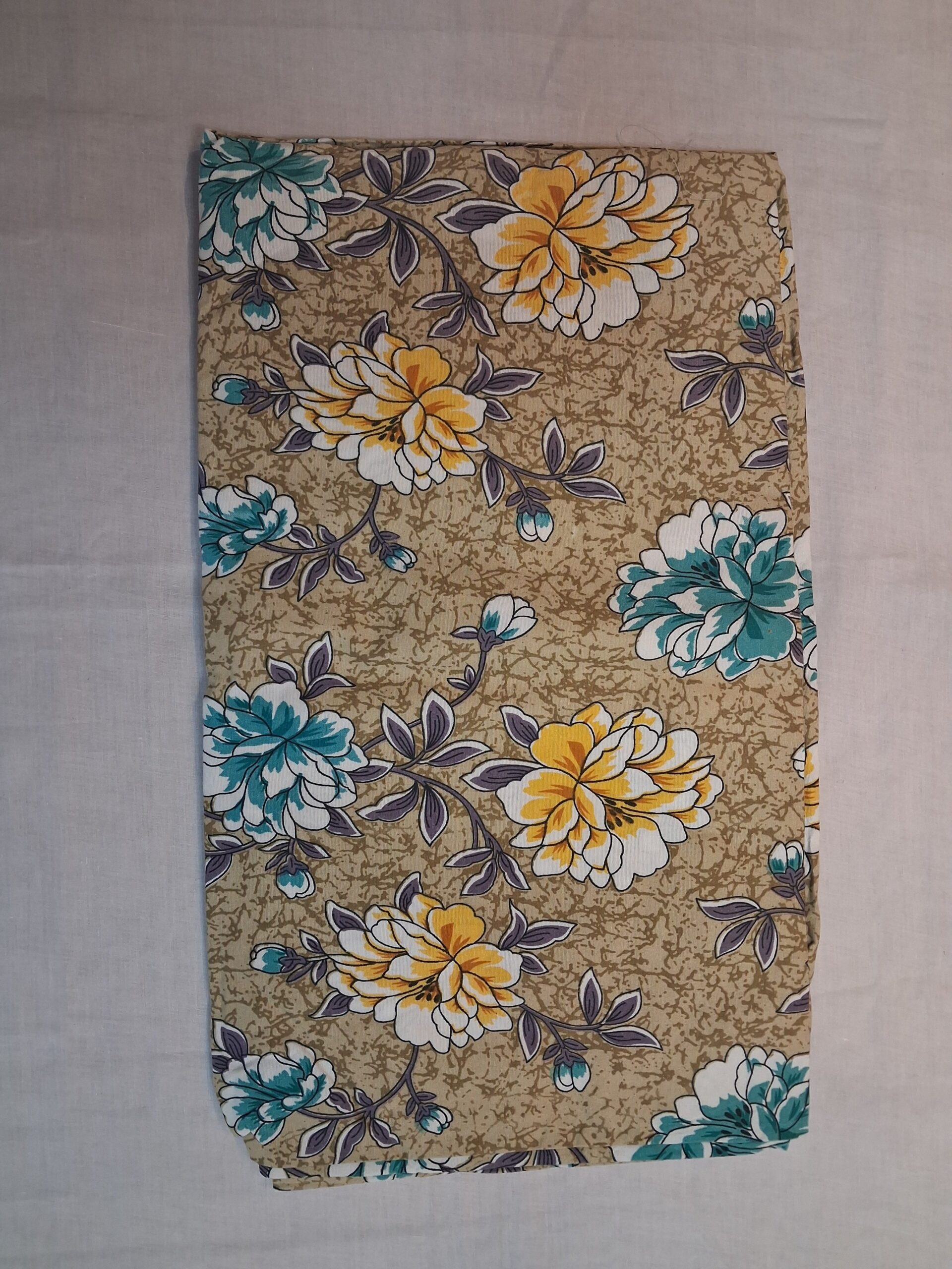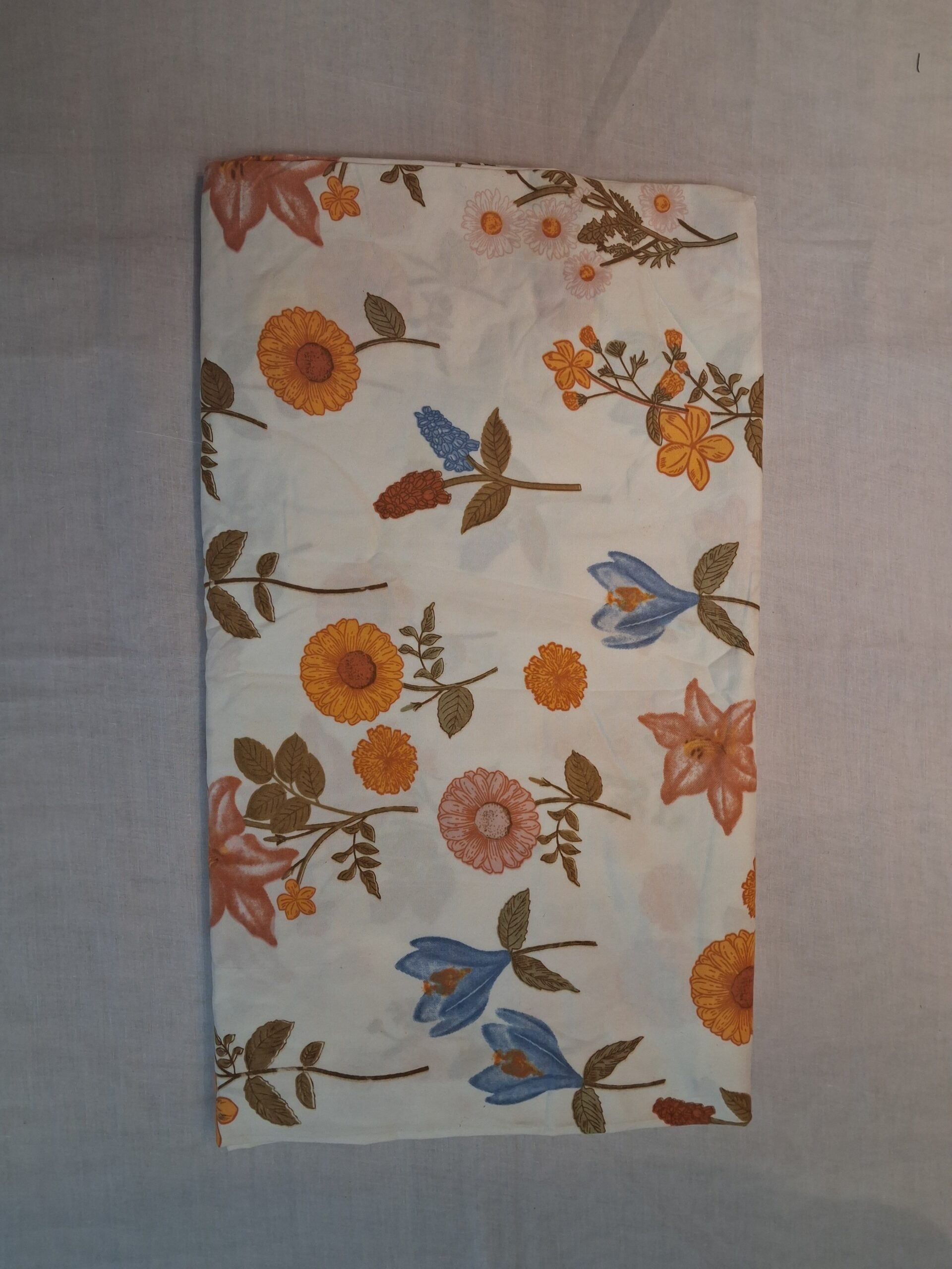 Double Bedsheet in white with vibrant floral motifs, featuring orange sunflowers and blue blossoms, adds a cheerful touch to your bedding.