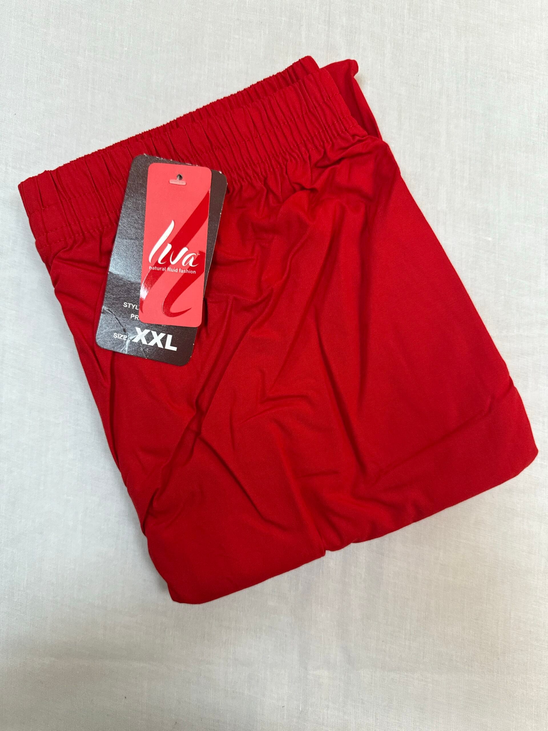 Red XXL bottom wear features a vibrant hue and elastic waistband for comfortable fit.